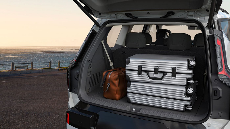 The EV9’s interior packaging is strong. In the second row, legroom exceeds 42 inches, offering genuine comfort for adults. The third row is spacious enough for children or occasional adult use, aided by a tilting walk-in mechanism that makes access straightforward. Cargo solutions are equally thoughtful, with a front trunk for secure storage and generous capacity behind the third row that expands with seats folded. Flat load floors and flexible seating layouts make it practical for both families and gear-heavy adventures.