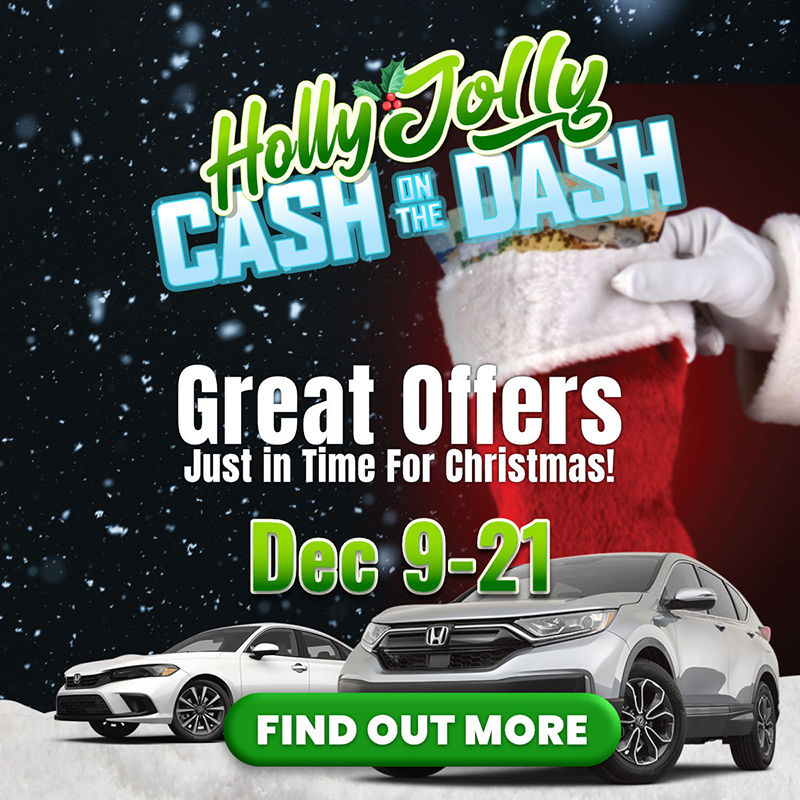 We know you’re swamped with holiday prep, but don’t let our Holly Jolly Cash On The Dash pass you by. These deals are hotter than chestnuts on an open fire – up to $1500 in finance dollars on new rides, interest rates as low as 1.88%, and up to $2000 in savings on select used cars.