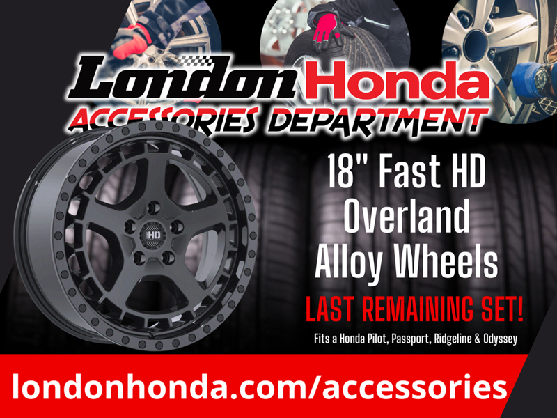 This month’s deal from our Accessories Department features the 18″ Fast HD Overland Alloy Wheel. This is the last set remaining! Fits a Honda Pilot, Passport, Ridgeline & Odyssey! Set of four $ 1,433.52+ taxes